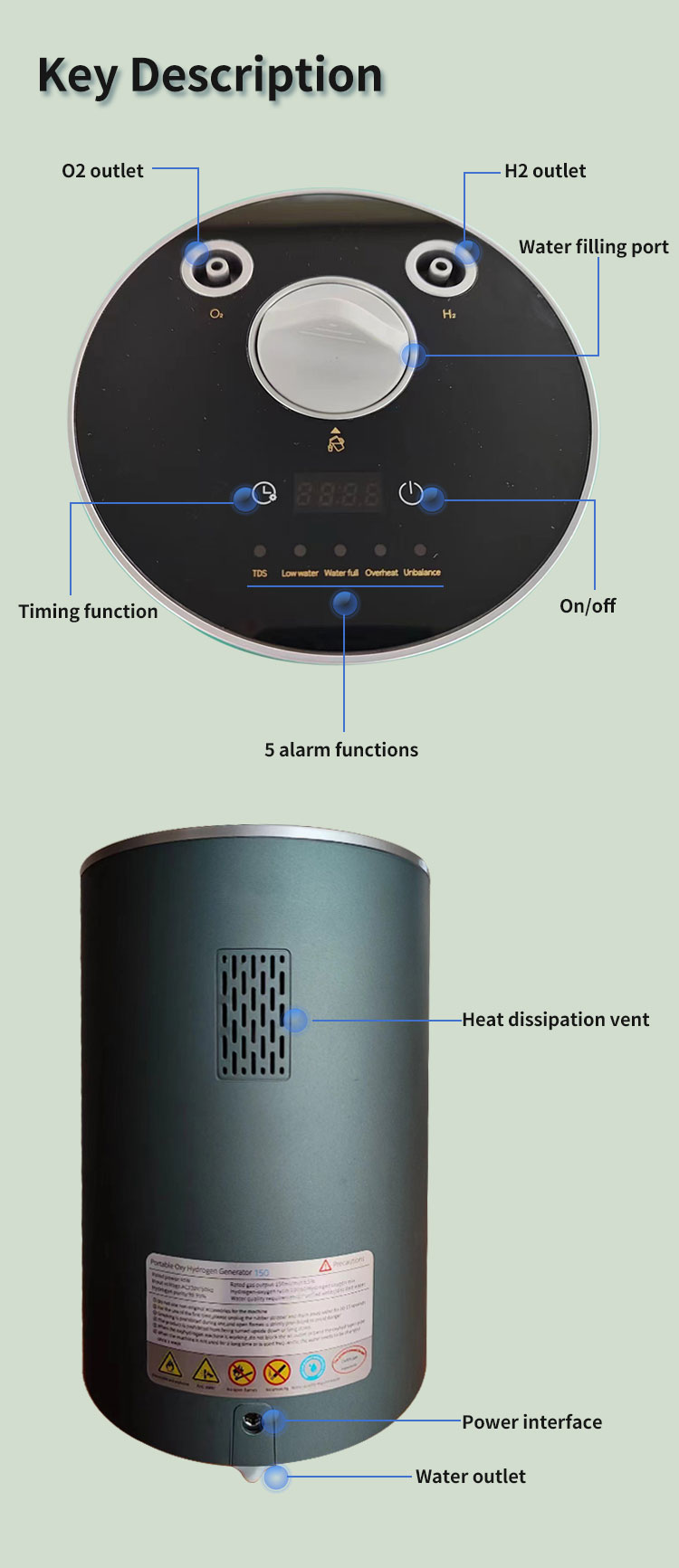 150ML hydrogen generator inhalation has 5 intelligent detection systems: